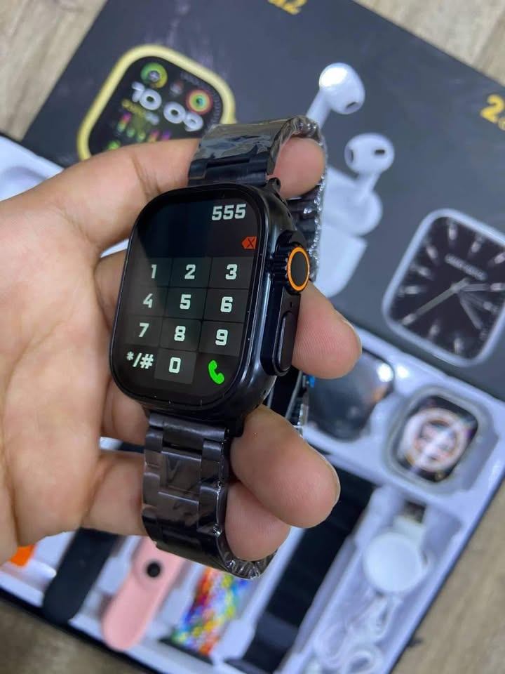 ultra 2 . ديالهوم. واحدة ليك واحدة اللي عزيز عليك بالاضافة الى 7 دالصماطي 2 ديال الحديد و 2 ثوب و 3 ديال سيليكون وصناتات ايربود برو 3 مع بطارية تدوم.